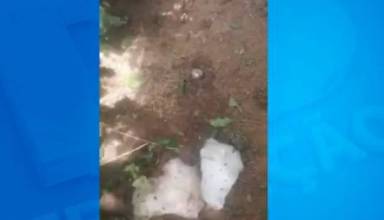 Um produtor rural registra a queda de uma grande pedra de gelo no meio do cafezal